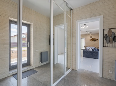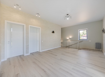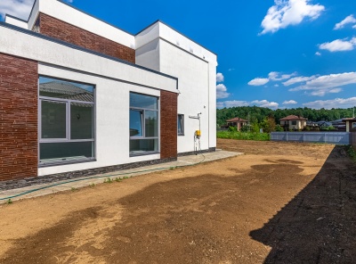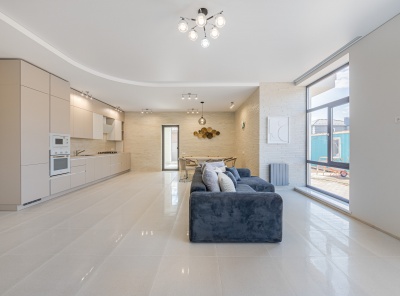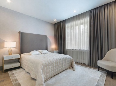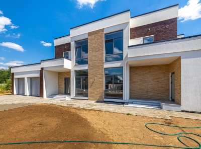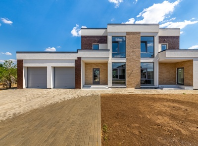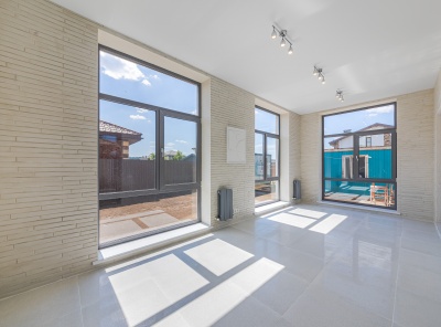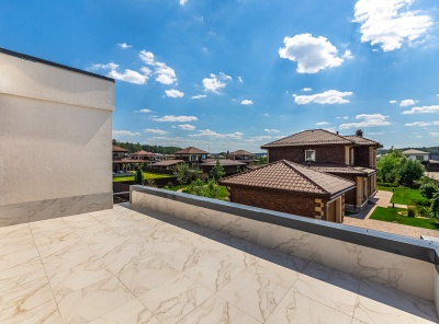 Продажа нового загородного дома площадью 405 кв.м. Новорижское шоссе, 29 км от МКАД. Коттеджный посёлок Подмосковные просторы. Дом построен в 2 этажа в камерной части поселка в стиле Хайтек. Изюминка дома — это панорамные окна и каждая спальня со своим с/у и гардеробной. Интерьер выполнен в спокойных пастельных тонах. Уютный участок 15 соток, расположен в тихой части на второй линии от леса.