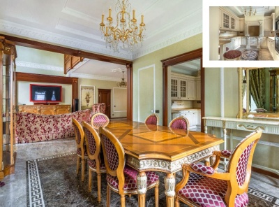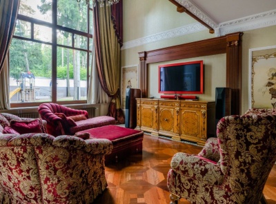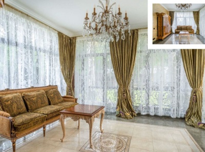 Продажа загородного дома площадью 618 кв.м. Рублево-Успенское шоссе, 20 км от МКАД. Коттеджный поселок Николина гора. Дом построен в 2 этажа, под ключ, с мебелью. В отделке дома использованы натуральные материалы: мрамор разных сортов, паркет на 1-ом и 2-ом этаже из натуральной вишни, фасад из натурального гранита. Мебель в доме от итальянских и немецких производителей: Francesco Molon, Provasi, Halley, King Koil. На участке расположен гараж на 2 автомобиля, квартира для персонала с двумя спальнями, помещение для охраны, детский городок, а также зона барбекю.