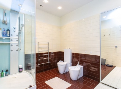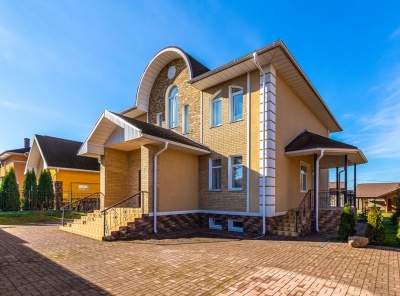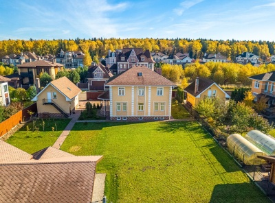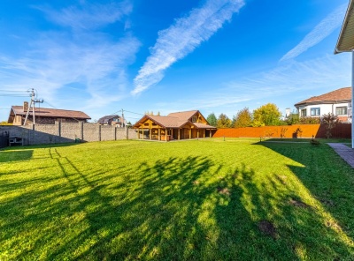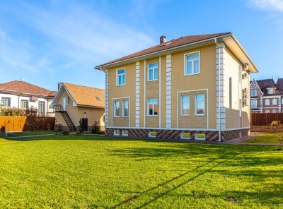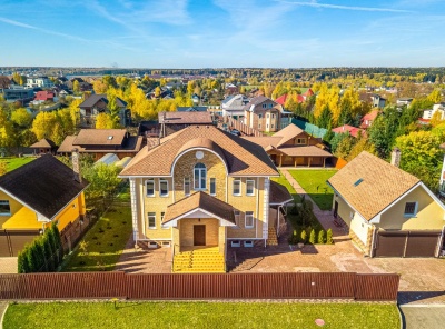 Аренда загородного дома площадью 620 кв.м. Коттеджный поселок Русская деревня. Новорижское шоссе, 24 км от МКАД. Дом площадью 350 кв.м. построен в 2 этажа из кирпича, фундамент и перекрытия монолит, кровля - мягкая черепица. Полы - высококачественный шведский ламинат, плитка - тёплый пол. Высота потолков - 3.10 м. На участке расположен банный комплекс 150 кв.м. из бревна с бассейном и джакузи, гараж 120 кв.м. на 2 м/м и квартирой для персонала. Участок 20 соток, уложен газон.