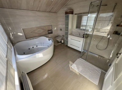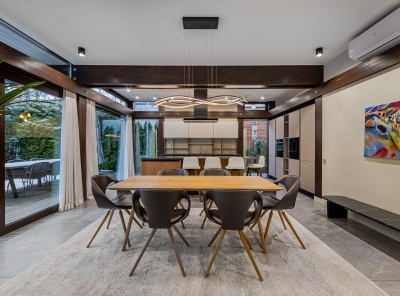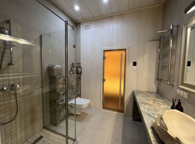 Продажа уникального загородного дома площадью 523 кв. м. Новорижское шоссе, 14 км. от МКАД. Коттеджный поселок Павлово 2. Дом построен в 2 этажа под ключ. Фасад дома стильно декорирован натуральным травертином и итальянской штукатуркой. Внутренняя отделка дома реализована с использованием премиальных материалов из натурального дерева и мрамора. Топовые инженерные системы установлены как в основном доме: центральная вентиляция с увлажнением и датчиками CO2, кондиционирование, система умный дом, так и в бассейне и гостевом доме.