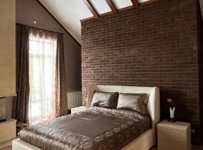 Продажа загородного дома общей площадью 450 кв.м. Новорижское шоссе, 25 км от МКАД. Коттеджный поселок Озерный. Дом построен в два этажа с большой террасой и двумя балконами имеет отличное качество внутренней отделки, продуманную планировку, стены с отделочным премиальным кирпичом Terca Terra, крыша композитная черепица Metrotile MetroBond.