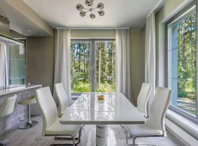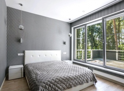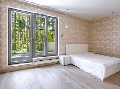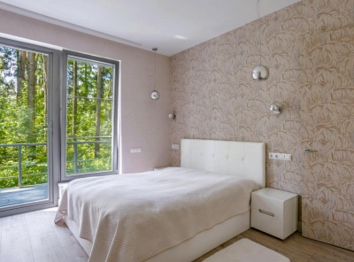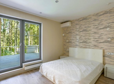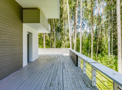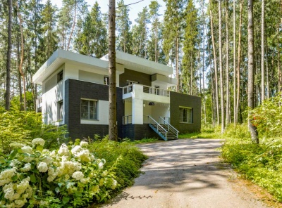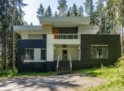 Продажа загородного дома площадью 455 кв. м. Новорижское шоссе, 15 км. от МКАД. Коттеджный поселок Истра. Современный дом в окружении лесного массива сочетает выразительную архитектуру и продуманную функциональность. Фасад выполнен в сдержанной, контрастной гамме с использованием натуральных и долговечных материалов, что подчеркивает геометрию объемов и гармонично вписывает здание в природный ландшафт.