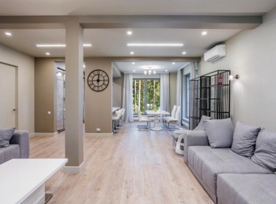 Продажа загородного дома общей площадью 437 кв.м. Новорижское шоссе, 19 км от МКАД. Коттеджный поселок Миллениум парк. Чёткие прямые линии и минималистичный дизайн фасада формируют выразительный и утончённый облик. В облицовке использованы контрастные материалы в сдержанных белых и тёмно-серых тонах с фактурой камня и дерева. Экстерьер подчеркивается декоративной подсветкой. Коттедж оснащён приточно-вытяжной вентиляцией, кондиционированием, подогревом полов и системой умный дом.