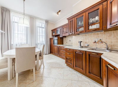 Аренда 3 комнатной квартиры площадью 103 кв.м. Новорижское шоссе 14 км от МКАД. Коттеджный поселок Павлово-2. Квартира полностью меблирована. Выполнен хороший ремонт в современном сдержанном стиле. Квартира оборудована всей необходимой бытовой техникой и мебелью. Кондиционеры. Окна выходят тихий бульвар.Планировка: большая гостиная с лоджией, кухня-столовая, гардероб, с/у, 2 спальни, гардеробная комната, большой с/у.