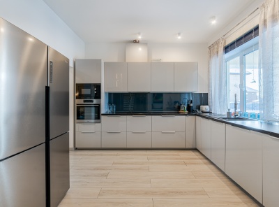 Продажа загородного дома площадью 420 кв.м. Новорижское шоссе, 23 км от МКАД. Коттеджный поселок Новорижский. Дом построен в 2 этажа из газоблока в стиле хайтек. Интерьер выполнен в современном стиле с панорамным остеклением. Все коммуникации разведены (материалы премиум класса), первый этаж - теплые водяные полы. В котельной медная опрессовка. Участок 12 соток, правильной формы. Ведутся работы по фасаду. Парковка на 4 м/м. Все коммуникации центральные.