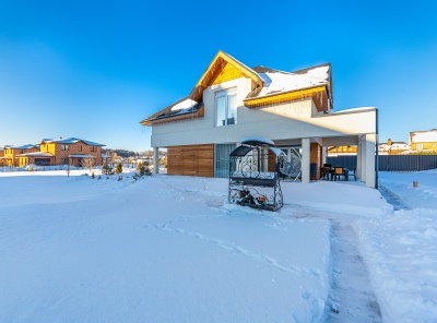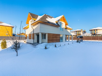 Продажа загородного дома площадью 330 кв.м. Коттеджный поселок Русская деревня. Новорижское шоссе, 24 км от МКАД. Дом построен в 2 этажа по проекту строительной компании. В отделке фасада использован массив лиственницы. Дизайнерский интерьер выполнен в современном Европейском стиле. Установлена встроенная кухня с качественной бытовой техникой. Дом оборудован системой очистки воды, дополнительно установлен дизель генератор. Большой участок 18 соток на солнечной стороне с ландшафтным дизайном, высажены плодовые и хвойные деревья.