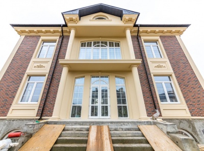 Продажа загородного дома общей площадью 780 кв.м. Новорижское шоссе, 19 км от МКАД. Коттеджный поселок Миленниум парк. Дом построен из кирпича в 3 этажа в классическом стиле. В отделке фасада использованы клинкерный кирпич, камень и мозаика. Натуральная черепица на кровле. Каминный зал с лестничным маршем, вторым светом и панорамным остеклением. На участке в 23 сотки выстелен газон, высажены крупномеры и кустарники, организован автополив, вымощены дорожки, сделано освещение.