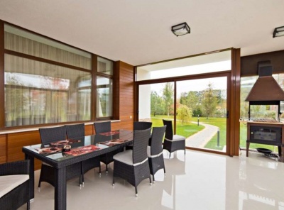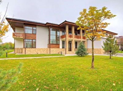 Продажа загородного дома общей площадью 800 кв.м. Новорижское шоссе, 19 км от МКАД. Коттеджный поселок Миллениум Парк. Коттедж построен в 2 этажа. Выполнена дизайнерская отделка под ключ с мебелью. С бассейном и панорамными окнами. Фасад дома выполнен из термолиственницы и дагестанского песчаника. Ленточный фундамент c монолитными перекрытиями. Дом оснащен оборудованием немецкого производства: котельной Viessman, сантехникой Keuko, Villeroy&Boch, кухонной техникой Kuppersbuch. Участок 25 соток с выходом к каналу.