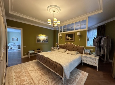 Продажа загородного дома площадью 605 кв.м. Новорижское шоссе, 14 км от МКАД. Коттеджный поселок Пенаты. Роскошный дом с дорогой отделкой, в современном классическом стиле в жилом строгоохраняемом поселке со всеми центральными коммуникациями. На лесном участке 30 соток расположены: основной дом, дом для персонала, теплый гараж на 2 авто, беседка с зоной барбекю, фонтан, вольер для собаки.