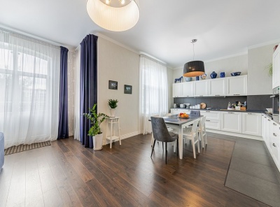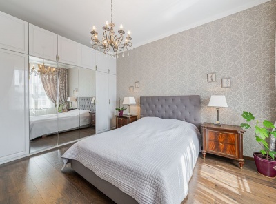 Аренда 4-комнатной квартиры площадью 165 кв.м. Метро Сокол, 12 минут пешком. Чапаевский переулок, дом 3. ЖК Триумф Палас. Стильная кухня оборудована расширенным комплектом встроенной техники, включая посудомоечную машину, духовой шкаф. Для поддержания порядка предусмотрены гардеробная и кладовая. Оптимальный микроклимат обеспечивают теплые полы и сплит-система. Вся необходимая для комфорта мебель. Планировка: кухня-столовая, гостиная, 3 спальни, 2 с/у.