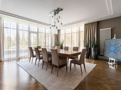 Продажа загородного дома общей площадью 688 кв.м. Поселок Жуковка-21, Рублево-Успенское шоссе, 9 км от МКАД. Дом построен в 2 этажа на участке в 47 соток. Отделка под ключ. Коттедж оснащен всей необходимой техникой и мебелью. Интерьер изготовлен из высококачественных и экологически чистых материалов. Планировка:1 этаж: гостиная, столовая, кухня2 этаж: 3 спальни со своими гардеробными и с/у.