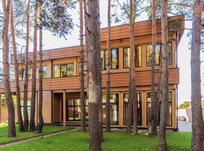 Продажа дома площадью 626 кв.м. Новорижское шоссе, 12 км от МКАД. Коттеджный поселок Прозорово. Коттедж построен в 2 этажа из клееного бруса. Под отделку. Расположен в тихой части поселка рядом с лесом. Панорамное остекление с видами на лесной участок, высокие потолки. На участке площадью 12,7 соток располагается отдельно стоящая баня с гостевым блоком площадью 140 кв.м.