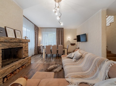 Продажа загородного коттеджа площадью 370 кв.м. Новорижское шоссе, 33 км от МКАД. Коттеджный поселок Люкс-Проект. Коттедж построен под ключ в 2 этажа. Дом строился для себя, особенностью проекта является просторная кухня-гостиная-столовая с дровяным камином. На участке 9 соток правильной формы выполнен ландшафтный дизайн, высажены хвойные и плодовые деревья, разведены дорожки и освещение, установлен автополив с автоматическим управлением и дренаж по участку, обустроена беседка с зоной барбекю. Есть теплый гараж на 1 м/м и навес на 1 м/м.