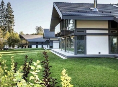 Продажа загородного дома площадью 450 кв.м. Коттеджный поселок Гринфилд. Новорижское шоссе, 23 км от МКАД. Коттедж построен в 2 этажа. Полностью готов к проживанию. Отделка в современном стиле. Встроенная кухня с бытовой техникой. Панорамное остекление. Просторный участок 23 сотки с ландшафтным дизайном. На участке расположен отдельно стоящий домик с квартирой для персонала, сауной и беседкой для барбекю. Так же есть гараж на 2 авто.