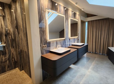 Продажа загородного дома площадью 670 кв.м. Новорижское шоссе 12 км от МКАД. Коттеджный поселок Липки. Дом построен в 3 этажа из кирпича под ключ с мебелью. Фасады выполнены из натурального травертина и лиственници. Установлено 2 котла Buderus. Разводка отопления в котельной выполнена медью. Установлена система очистки воды Гидровел. Установлены дизайнерские решётки, рольставни, тёплые водяные полы, приточная вентиляция. Система Нептун от протечек установлена на каждом этаже, в техническом шкафу.