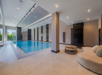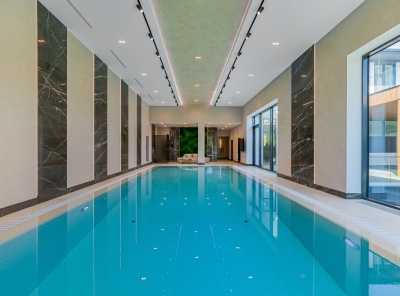 Продажа загородного дома общей площадью 1315 кв.м. Коттеджный поселок Гринфилд. Новорижское шоссе, 24 км от МКАД. Коттедж построен в 3 этажа. Особенности проекта отдельно стоящий крытый бассейн 23 метра с сауной и хаммом, 2 этаж свободного назначения подойдет для спортзала. У каждого помещения организован собственный выход на участок. Территория вокруг дома утопает в зелени. На участке разбит двухъярусный сад, установлено уличное освещение. Площадь участка 26 соток.Планировка;1 этаж - гостиная, кухня-столовая, кабинет, спальня.
