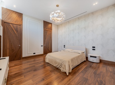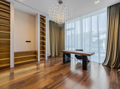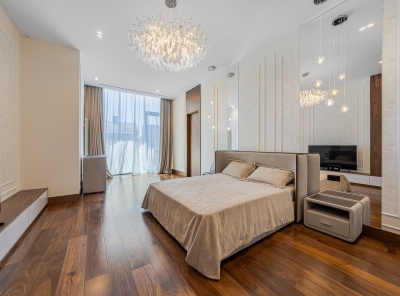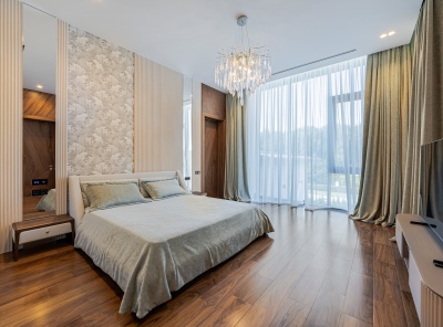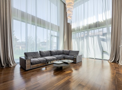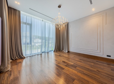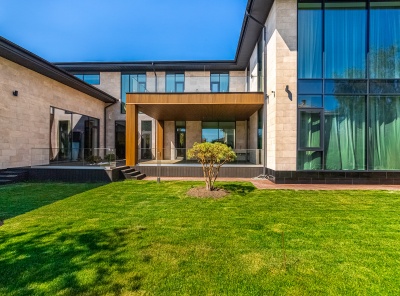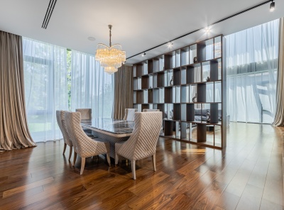 Продажа загородного дома площадью 1155 кв.м. Новорижское шоссе 24 км от МКАД. Коттеджный поселок Мэдисон Парк. Коттедж построен в 2 этажа. Большой, просторный, светлый дом с панорамным остеклением. Полностью меблирован и оснащен техникой от ведущих производителей. Второй свет с высотой потолков 7 метров. Установлена система умный дом и приточно-вытяжная система вентиляции с кондиционированием и увлажнением воздуха. Камин на биотопливе. Бассейн 12 метров, сауна, хамам. 6 спален. Квартира персонала. Гараж на 3 м/м в контуре дома.