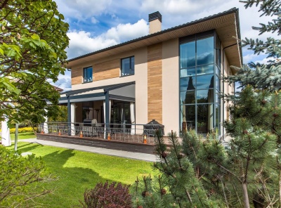 Продажа загородного дома общей площадью 400 кв.м. Новорижское шоссе, 24 км от МКАД. Коттеджный поселок Монтевиль. Дом построен в 2 этажа. Под ключ. Выполнена дизайнерская отделка под ключ, с мебелью. Дом новый. Лучшее расположение в поселке. Со своим видом и выходом в парк с прудом. Оборудован приточно-вытяжной системой вентиляции с центральным кондиционированием. На участке 18 соток выполнен ландшафтный дизайн с освещением.Планировка1 этаж - холл, кухня, столовая, гостиная, спальня с с/у, 2 этаж - 3 спальни с с/у и гардеробными.