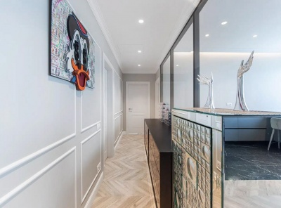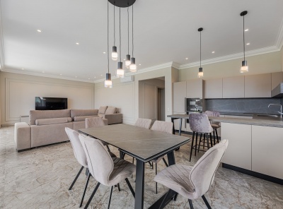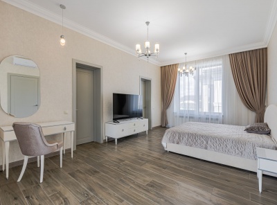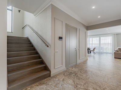 Продажа загородной резиденции у леса общей площадью 860 кв.м. Новорижское шоссе, 23 км от МКАД. Коттеджный поселок Риверсайд. Дом построен в 2 этажа из кирпича. Отделка выполнена с применением самых дорогих материалов. Натуральный мрамор и дубовый паркет, оникс, гипсовая лепнина, венецианская штукатурка. Роскошный интерьер исполнен в светлых тонах, дополнен стильной мебелью и изысканными предметами декора. Функциональная кухня укомплектована встроенной современной техникой Gaggenau.