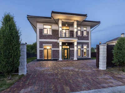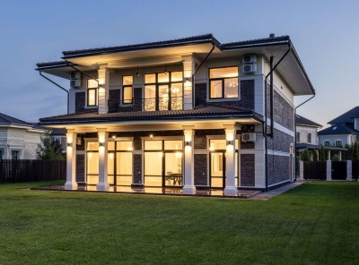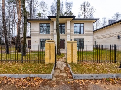 Продажа загородного дома площадью 440 кв.м. Новорижское шоссе, 9 км от МКАД. Коттеджный поселок Поздняково. Коттедж построен из кирпича в 2 этажа в стиле современной классики под чистовую отделку (Whitebox). Фасад облицован натуральным камнем. Лесной участок 13 соток. Высажен газон, предумострена площадка для авто с возможностью построить гараж или установить навес. Удобный выезд на Нововорижское шоссе.