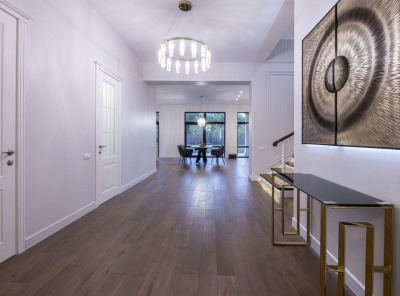 Продажа загородного дома площадью 430 кв.м. Новорижское шоссе, 14 км от МКАД. Коттеджный посёлок Петровский. Интерьер разработан известным бюро Sundukovy Sisters. Проект дома предусматривает 3 этажа, просторную столовую-гостиную с камином, кухню с выходом на участок, СПА-зону с хамам и бассейном, а также 4 спальни. Участок 15.25 соток расположен в тихой и приватной части поселка. Парковка на 4 м. м. В доме: все центральные коммуникации, установлены приточно-вытяжная вентиляция, в комнатах сплит-системы, противопожарная сигнализация.