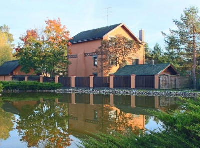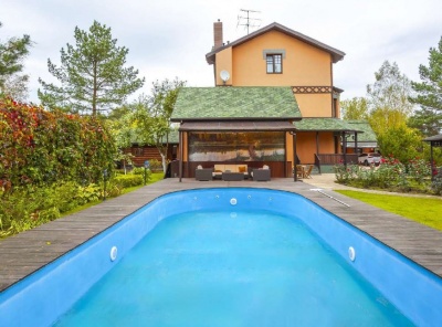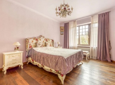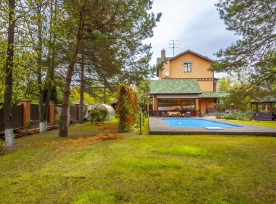 Продажа загородного дома общей площадью 300 кв.м. Новорижское шоссе, 29 км от МКАД. Поселок Борки. Дом с бассейном и видом на лес. Из всех окон открывается красивый вид на сосновый лес. Дом в идеальном состоянии - не требует ремонта. Полностью меблирован дорогой итальянской мебелью и готов к проживанию. Есть спальня на первом этаже с отдельным выходом из дома, санузлом и гардеробной. Использованы дорогие материалы. На полу массив тика и дуба. Установлены деревянные стеклопакеты, итальянская кухня с мраморными столешницами и техникой SMEG.