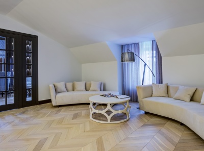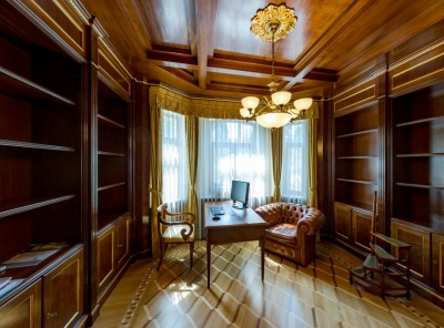 Продажа нового дома общей площадью 915 кв.м. Минское шоссе, 16 км. от МКАД. Коттеджный поселок Трувиль. Дом построен в 3 этажа. Планировочное решение предусматривает большую SPA зону с двухсветным бассейном, 5 спален с ванными и гардеробными, кабинет, гостиную, кухню-столовую. Участок 33 сотки. Отдельно на участке гараж с квартирой для персонала. Поселок находится вдали от шоссе, в лесном массиве, рядом с великолепным озером.