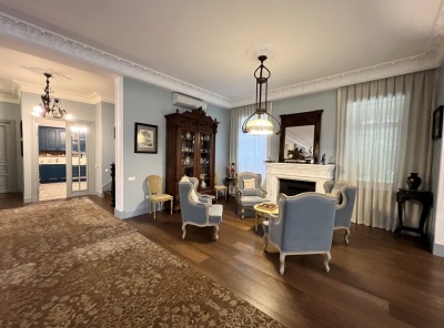 Продажа загородного дома площадью 220 кв.м. Коттедж построен в 2 уровня, под ключ. В доме выполнен качественный ремонт. Отделка в классическом стиле с дорогой итальянской мебелью. Встроенная итальянская кухня. Участок 9 соток с ландшафтным дизайном.Планировка дома:1 этаж - прихожая, гостиная-каминная, кухня-столовая с выходом в зимний сад, спальня, с/у, постирочная, кладовая, котельная, гараж на 2 авто,2 этаж - 3 спальни, ванная комната, хозяйская спальня со своей ванной комнатой, гардеробная.