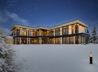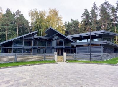 Продажа загородного дома в стиле фахверк общей площадью 420 кв.м. Коттеджный поселок АртЭко. Новорижское шоссе, 32 км от МКАД. Дом построен в 2 этажа. Построен по немецкой технологии Huf Haus с современными инженерными системами. Фасад выполнен из стекла и дерева. Коттедж расположен на прилесном участке 35 соток с панорамными видами в лес. Гараж на 2 м/м с подсобными помещениями. Также на участке расположено двухэтажное строение площадью 50 кв.м хозяйственного назначения.
