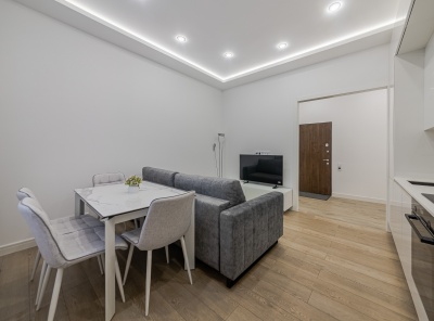 Продажа новой, красивой 2-х комнатной квартиры площадью 47 кв.м. Новорижское шоссе 14 км от МКАД. Коттеджный поселок Павлово-2. Уютная, светлая квартира с дизайнерским, современным, свежим ремонтом. Квартира полностью меблирована и оснащена отличной, качественной мебелью и техникой от лучших европейских производителей. Окна выходят в тихий двор. Большое количество машино-мест у дома.Планировка: прихожая, гардеробная, СУ с постирочной, просторная кухня-столовая-гостиная, спальня.