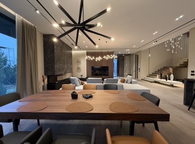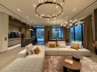 Продажа роскошного загородного дома площадью 760 кв. м. Рублево-Успенское шоссе, 19 км. от МКАД. В коттеджном поселке Николино. Дом построен в 2 этажа. Дизайнерская отделка интерьеров оформлена в спокойной цветовой гамме. Натуральные материалы, камень, дерево и металл в балансе создают атмосферу спокойствия и статусности. Коттедж полностью готов к проживанию — каждая деталь, от тщательно подобранного декора и изящных люстр до стильной мебели и встроенной бытовой техники, продумана для комфортной жизни.