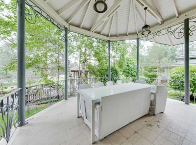 Продажа загородного дома общей площадью 900 кв.м. Новорижское шоссе, 18 км от МКАД. Дом построен в 3 этажа. На участке 28 соток располагается гараж на 2 м/м с квартирой для водителей, отдельная квартира для обслуживающего персонала.Планировка:1 этаж - кухня, столовая-гостиная, библиотека с камином, 2 гостевые спальни, 2 ванных комнаты, SPA- зона - дровяная баня, душевая, комната отдыха2 этаж - 4 спальни с ванными и гардеробными комнатами, зимний сад, открытая террасаМансарда - спальня, ванная комната.