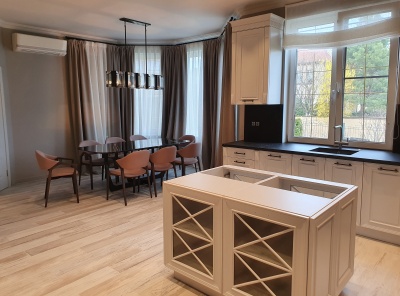 Аренда загородного дома площадью 400 кв.м. Коттеджный поселок Княжье Озеро. Новорижское шоссе, 21 км от МКАД. Коттедж построен в 2 этажа под ключ. Полностью готов к проживанию. Отделка в классическом стиле, с мебелью. Участок 12 соток, с ландшафтным дизайном. На участке расположена дровяная баня, гараж на 2 м/м.Планировка:1 этаж - прихожая, гостиная с камином, кухня, столовая, с/у, постирочная, зимний сад с выходом на участок, спальня с ванной комнатой и гардеробной2 этаж - 2 спальни, ванная комната, спальня со своей ванной комнатой.