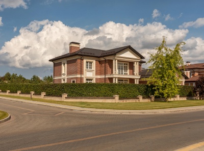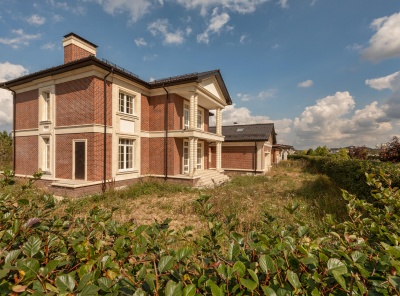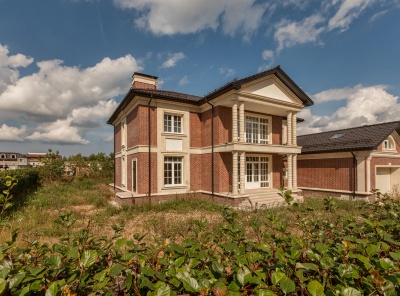 Продажа загородного дома общей площадью 430 кв.м. Новорижское шоссе, 19 км от МКАД. Коттеджный поселок Ренессанс парк. Дом построен из кирпича в 2 этажа. Фасад отделан клинкерной плиткой под кирпич и натуральным камнем. Кровля из керамической черепицы. Участок 16 соток ровный и правильной формы. Недалеко от озера с рестораном и парком. Блок для персонала над гаражом включает в себя: кухню студию, 2 спальни, с/у.Планировка:1 этаж - кухня, столовая-гостиная, спальня, кабинет, с/у, гараж на 2 м/м,2 этаж - 3 спальни со своей гардеробной и с/у.