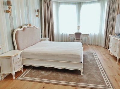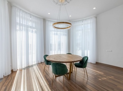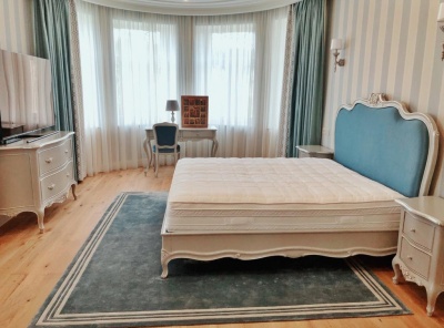 Продажа загородной резиденции площадью 600 кв.м. Новорижское шоссе, 21 км. Коттеджный поселок Резиденция Монолит. Коттедж построен из кирпича в 3 уровня под ключ. Мебель и светильники Ralph Lauren, Bernhard, Lexington и другие. Лестница, камин, карнизы, двери с витражами, а также есть эксклюзивный декор от архитектора. На участке 30 соток создан красивый ландшафт. Ели, клены, барбарис, множество цветов и плодовых деревьев. Несколько зон для отдыха на природе, оригинальная беседка барбекю, открытая терраса.