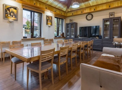 Продажа загородной усадьбы с двумя домами общей площадью 2800 кв.м. Коттеджный поселок Александрово. Новорижское шоссе, 27 км от МКАД. Участок 180 соток, с юга ограничивается поселковым проездом, с запада и востока - соседними участками, с севера лесом.Планировка:Дом 1:1 этаж: гостиная, столовая, мини-кухня, холл, холодильник, кухня, кабинет, коридор, санузел, постирочная, прихожая, крыльцо и терраса2 этаж: 4 спальни, 4 с/у, холл и гардеробные.Мансардный этаж: чердак, холл и санузел.