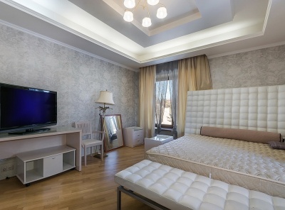 Продажа загородного дома площадью 705 кв.м. Новорижское шоссе, 9 км от МКАД. Коттеджный поселок Третья Охота. Дом построен в 3 уровня, под ключ, c мебелью. Фасад дома выполнен из натурального камня, во внутренней отделке использованы дорогие натуральные материалы. На участке выполнен ландшафтный дизайн, система автоматического полива. Отдельная зона для отдыха, крытая беседка с камином, печкой, мангалом и кухней. Площадь участка 18 соток.