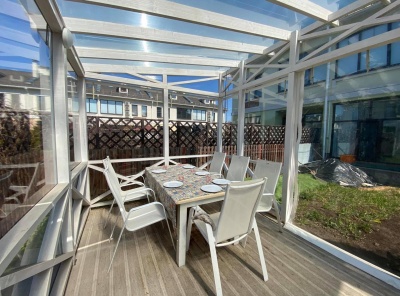 Аренда таунхауса общей площадью 220 кв.м. Новорижское шоссе, 23 км от МКАД. ЖК Покровский. Таунхаус построен из кирпича в 2 этажа. Высококачественная отделка в современном стиле с использованием качественных, натуральных отделочных материалов . С мебелью и всей необходимой техникой. На участке в 3 соток, постелен газон, обустроена летняя веранда. Планировка:1 этаж - кухня-столовая-гостиная с выходом на веранду, прихожая с гардеробом, с/у, гараж, котельная-постирочная.2 этаж — мастерспальня с гардеробной и с/у, 2 спальни с с/у и гардеробами.