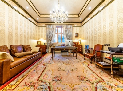 Продажа загородного дома общей площадью 440 кв.м. Новорижское шоссе, 19 км от МКАД. Коттеджный поселок Миллениум парк. Дом построен из кирпича в 2 этажа. Особняк стоит на участке в 27 соток. На участке уложен газон, высажены деревья, устроены дорожки и уличное освещение, есть беседка. Все коммуникации подведены.Планировка:1 этаж- холл, кабинет, кухня-столовая, гостиная с камином и выходом на террасу, гардеробная, санузел, гараж 2 м/м, 2 этаж- мастерсапалья с гардеробной и с/у, 2 спальни с с/у, спальня, гардеробная.