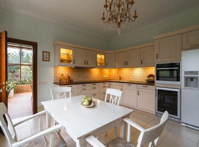 Аренда загородной резиденции площадью 600 кв.м. Новорижское шоссе, 21 км. Коттеджный поселок Резиденция Монолит. Коттедж построен из кирпича в 3 уровня под ключ. Мебель и светильники Ralph Lauren, Bernhard, Lexington и другие. Лестница, камин, карнизы, двери с витражами, а также есть эксклюзивный декор от архитектора. На участке 30 соток создан красивый ландшафт. Ели, клены, барбарис, множество цветов и плодовых деревьев. Несколько зон для отдыха на природе, оригинальная беседка барбекю, открытая терраса.