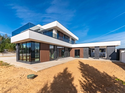 Продажа восхитительного загородного дома общей площадью 880 кв.м. Коттеджный поселок Миллениум Парк. Новорижское шоссе, 19 км от МКАД. Этот дом – настоящий шедевр в стиле Хай Тек, построен в 2 этажа, под ключ. Уникальная архитектура авторского проекта призвана вызывать восхищение у настоящих ценителей этого стиля. Спальни, кабинет и гостиная окнами выходят на лес и восход, что позволяет наслаждаться прекрасными видами.