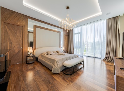 Продажа загородного дома общей площадью 1100 кв.м. Новорижское шоссе, 20 км от МКАД. Коттеджный поселок Агаларов Эстейт. Коттедж построен в 2 этажа. Большой, просторный, светлый дом с панорамным остеклением. Полностью меблирован и оснащен техникой от ведущих производителей. Второй свет с высотой потолков 7 метров. Установлена система умный дом и приточно-вытяжная система вентиляции с кондиционированием и увлажнением воздуха. Камин на биотопливе. Бассейн 12 метров, сауна, хамам, 5 спален. Квартира персонала. Гараж на 2 м/м в контуре дома.