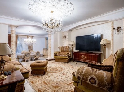 Продажа загородного поместья площадью 3600 кв. м. Рублево-Успенское шоссе, 24 км от МКАД. Коттеджный поселок Николино. Этот великолепный, продуманный до мелочей дом построен в 3 уровня из кирпича. Фacaд выпoлнен из трaвeртинa и пecчаникa. Внутри частично разведены коммуникации. Великолепный дизайн проект и заказные позиции для отделки спа-зоны идут в подарок. С участка в 62 сотки находящегося на возвышенности открывается прекрасный вид на поселок.