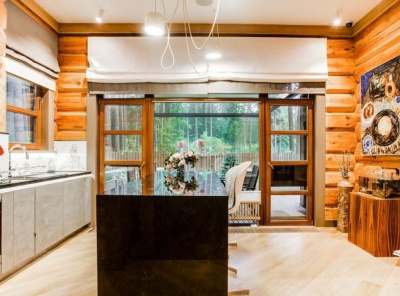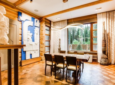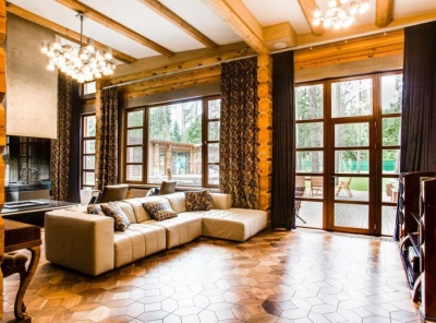 Аренда загородного дома площадью 810 кв.м., Новорижское шоссе, 16 км от МКАД. Коттеджный поселок Вымпел. Дом построен в 2 этажа. Выполнена великолепная отделка с использованием только высококачественных материалов, продуманное планировочное решение. Большая площадь остекления с потрясающими видами на вековые леса. Участок 90 соток. На участке расположены банный комплекс (100 кв.м.) с зоной отдыха, кухней, спальней с с/у, душевой, купелью, настоящей русской баней и с/у, а также гараж на 3 м/м (200 кв.м.