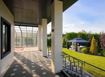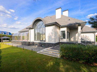 Продажа загородного дома площадью 870 кв.м. Новорижское шоссе, 27 км от МКАД. Коттеджный поселок Крона. Этот стильный особняк поражает с первого взгляда - гармония современного дизайна, роскоши и продуманного комфорта. Его архитектура словно создана, чтобы восхищать: панорамные окна заливают пространство светом, открывая виды на сад, а стеклянный лифт, соединяющий три этажа, придаёт дому ощущение лёгкости и технологичного изящества.