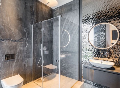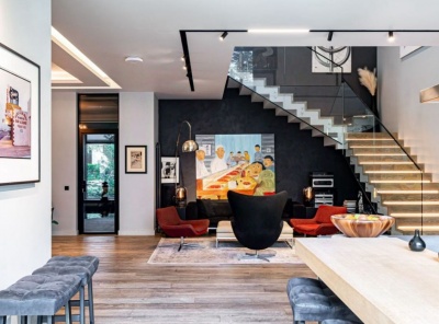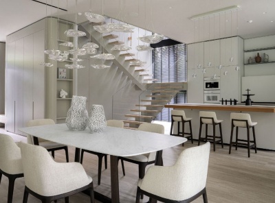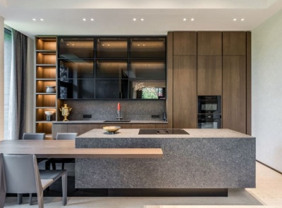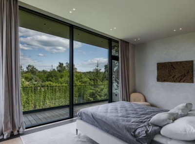 Продажа нового современного дома площадью 663 кв.м. Рублево-Успенское шоссе, 11 км. от МКАД. Коттеджный поселок Усово. Дом построен в 2 этажа, под ключ. Фасад из крупноформатного мраморизированного известняка, слэбы сланца с натуральным сколом, декоративное панно из натурального кварцита, термоясень. Концепция интерьера объединяет открытость и приватность, где пространства разных по назначению помещений перетекают из одного в другое.