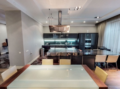 Аренда 6-комнатного дома в 2 этажа площадью 450 кв.м, с участком 6 соток и ландашфтным дизайном. Новорижское шоссе 1 км от МКАД. Коттеджный поселок Резиденция Рублево. В доме выполнен современный дизайнерский ремонт, в отделке использовались натуральные породы дерева, натуральный камень и современные материалы, сдается полностью с мебелью. Имеется вся необходимая бытовая техника, установлена система климат-контроля, удаленное регулирование уровня влажности и температуры, премиальная сантехника Villeroy&boch, Gessi, Laufen.