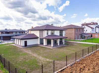 Продажа загородного дома площадью 430 кв.м. Новорижское шоссе 24 км от МКАД. Коттеджный поселок Мэдиссон парк. Коттедж построен в 2 этажа. Под финишную отделку. Участок 20 соток, вторая линия от леса. Планировка дома:1 этаж - терраса, холл, гостевой санузел, гардеробная, кухня-столовая, гостиная-каминная, выход на крытую террасу, кабинет, котельная, гараж на 2 м/м2 этаж - холл, хозяйская спальня со своим санузлом и гардеробной, 2 спальни со своим санузлом, спальня.
